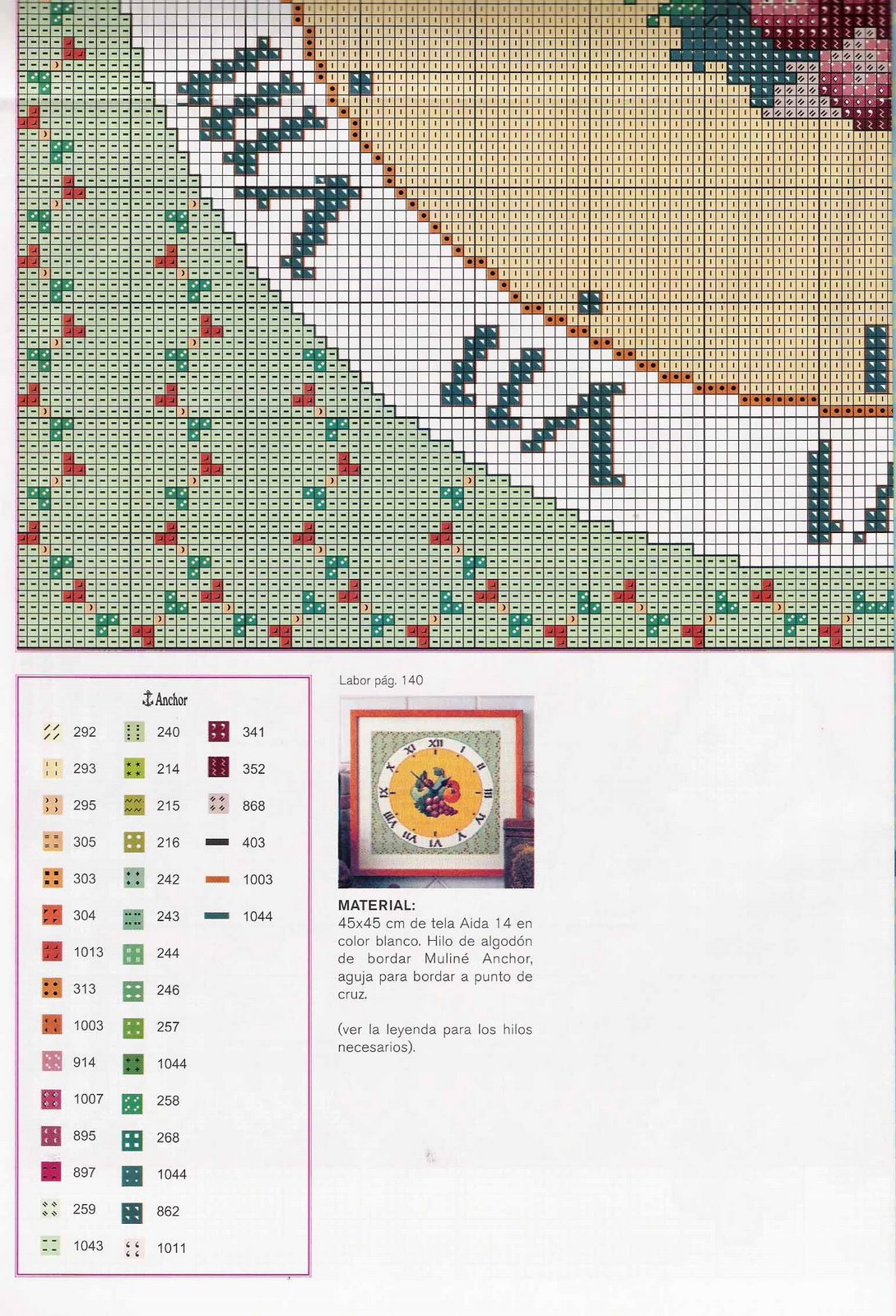 cross stitch clock tempus fugit written Latin
