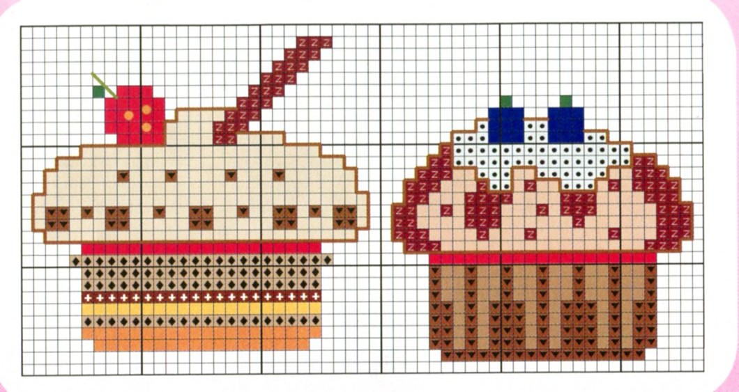 Strawberry and blueberries cupcakes cross stitch pattern