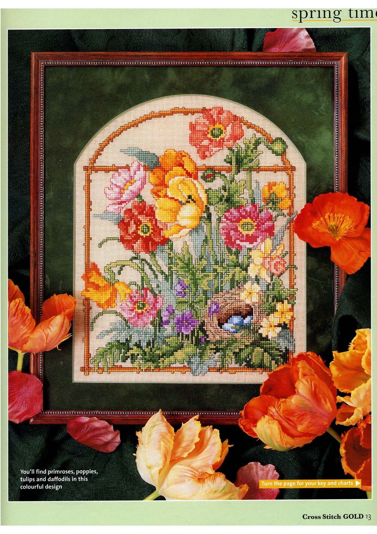 Home cross stitch painting with floral window (1)