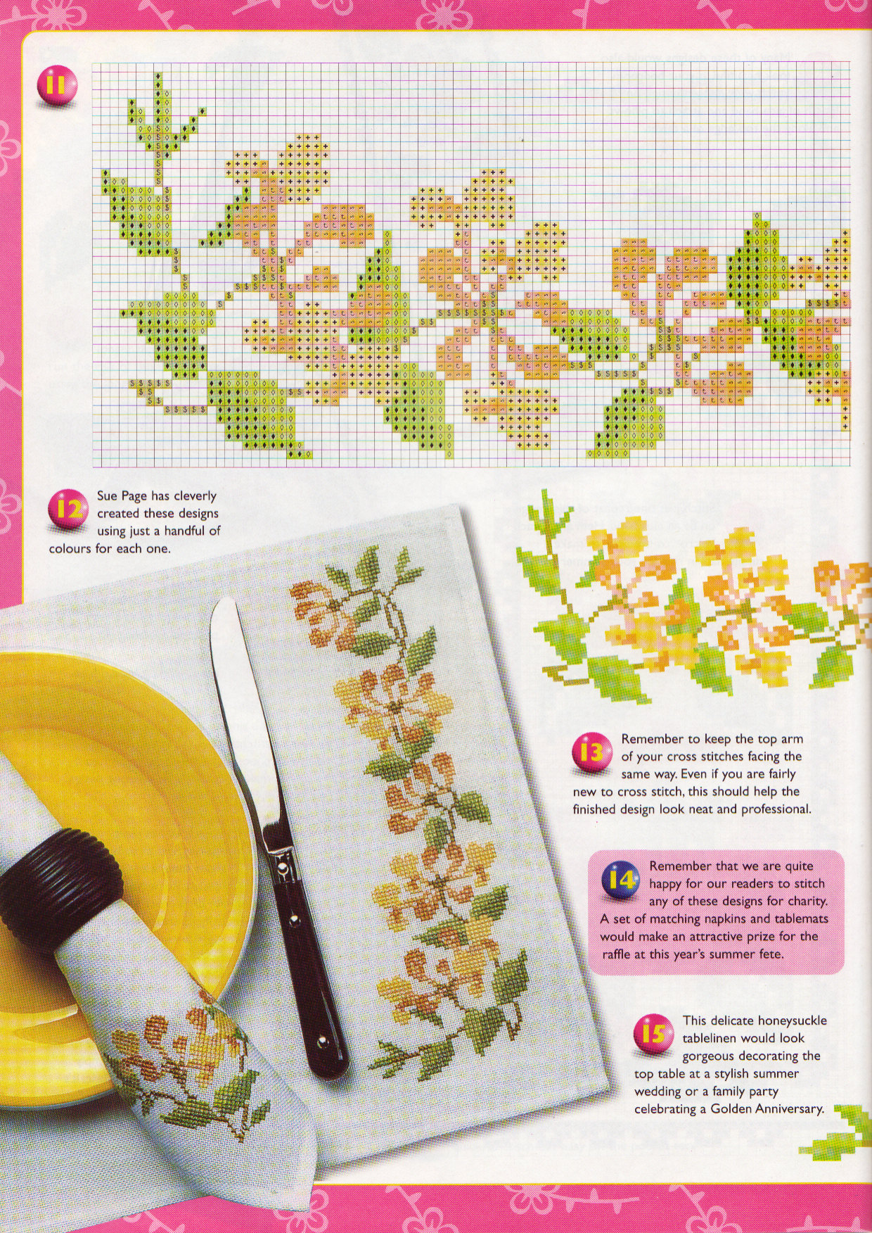 breakfast placemats cross stitch flowers with fuchsia and honeysuckle (3) Pattern added on April 25, 2022 by Amy
