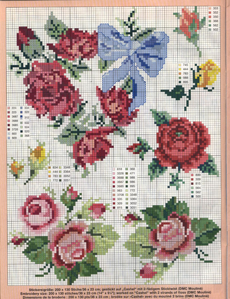 Beautiful pink rose cross stitch pattern (2)