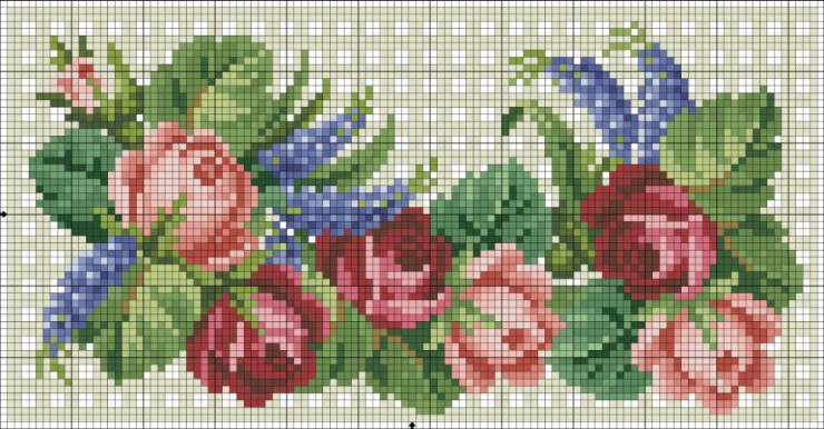 Roses and small flowers cross stitch pattern