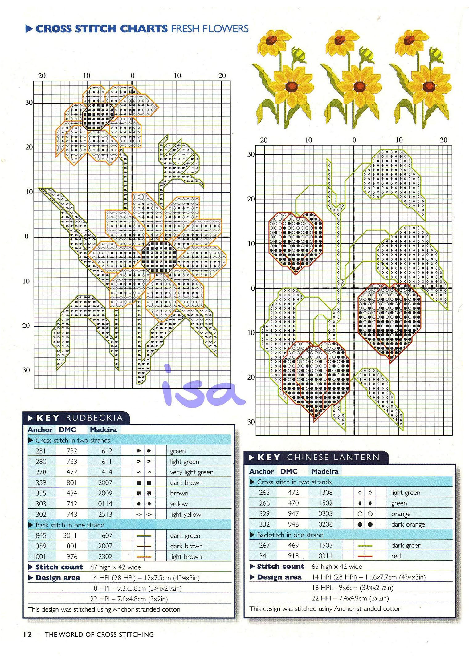 Rudbeckia and Chinese lantern cross stitch pattern
