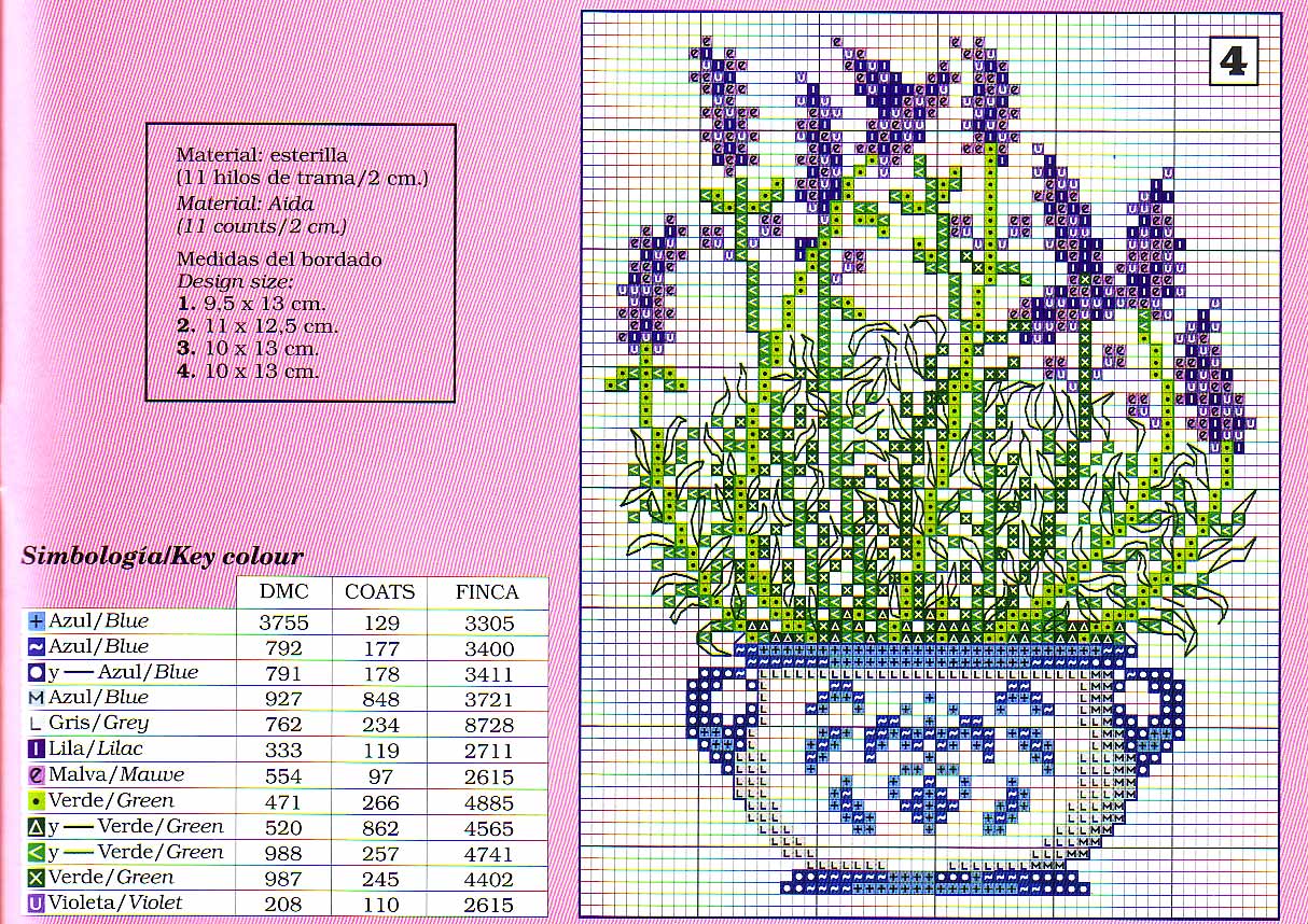 Pot of wild flower cross stitch pattern