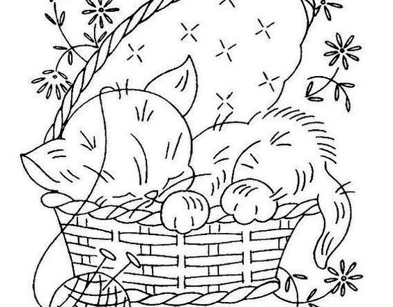 Embroidery design cat sleeping in the basket