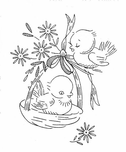 Birds in the basket free embroidery pattern