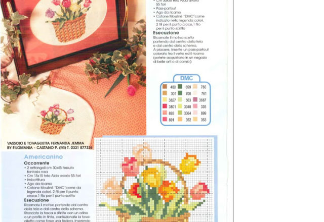 Basket of flowers tulips simple cross stitch pattern