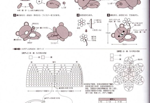Bear with daisy flower amigurumi pattern (2)