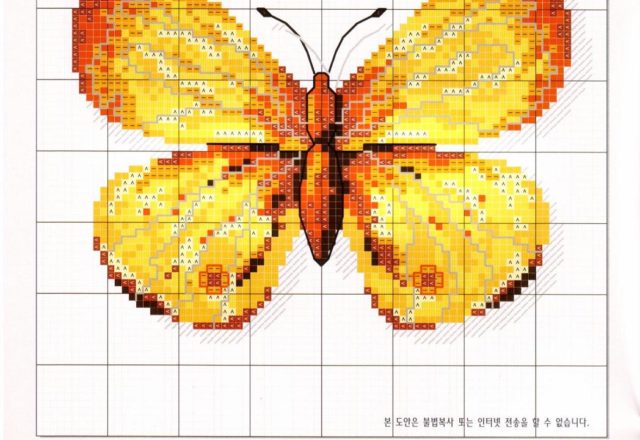 Beautiful yellow and orange cross stitch butterfly