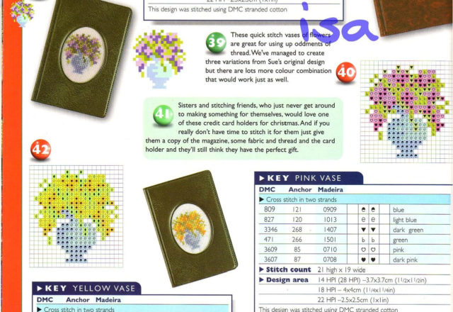 Blue and yellow vase cross stitch pattern