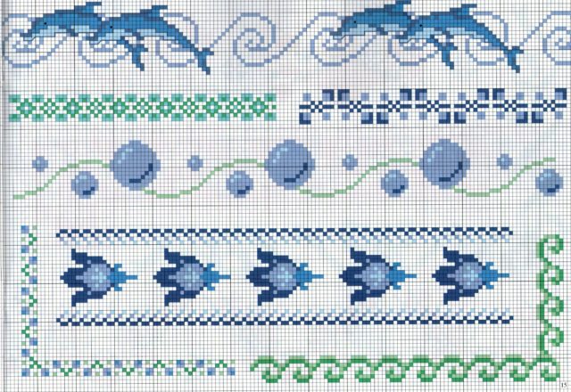 borders Cross stitch theme with dolphins and sea water bubbles Pattern added on April 24, 2022 by Amy