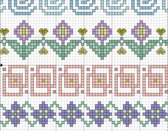 Borders flowers and hearts cross stitch patterns (1)