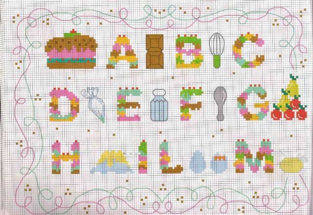 Cross stitch alphabet with cakes and pastries (1)