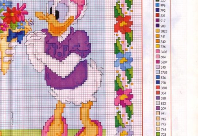 Cross stitch picture Donald Duck offer a bunch of flowers (2)