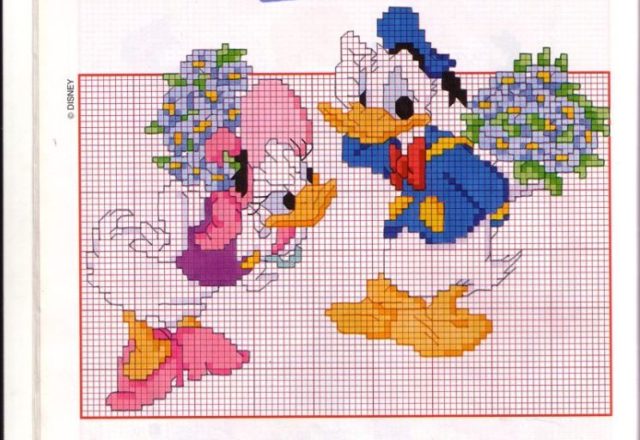 Daisy Duck angry and Donald Duck embarassed cross stitch