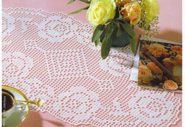 Free crochet filet pattern oval doily with roses (1)
