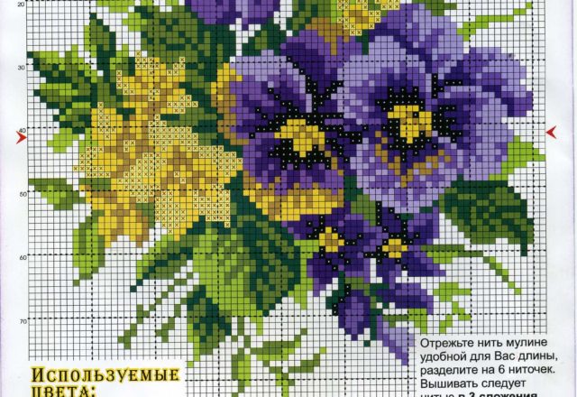 Pansy flowers free cross stitch pattern design