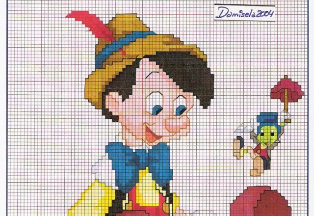 Pinocchio sitting cross stitch pattern